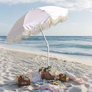 6ft Beach Umbrella with Fringe Sand Anchor Purple Stripe