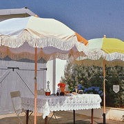- Yellow Striped Umbrella with Stand - this kit includes a 6ft yellow striped umbrella with cotton fringes and a portable umbrella stand, great for decorating your summer parties on the beaches, balconies, decks, gardens, lawn, lakeside, etc.