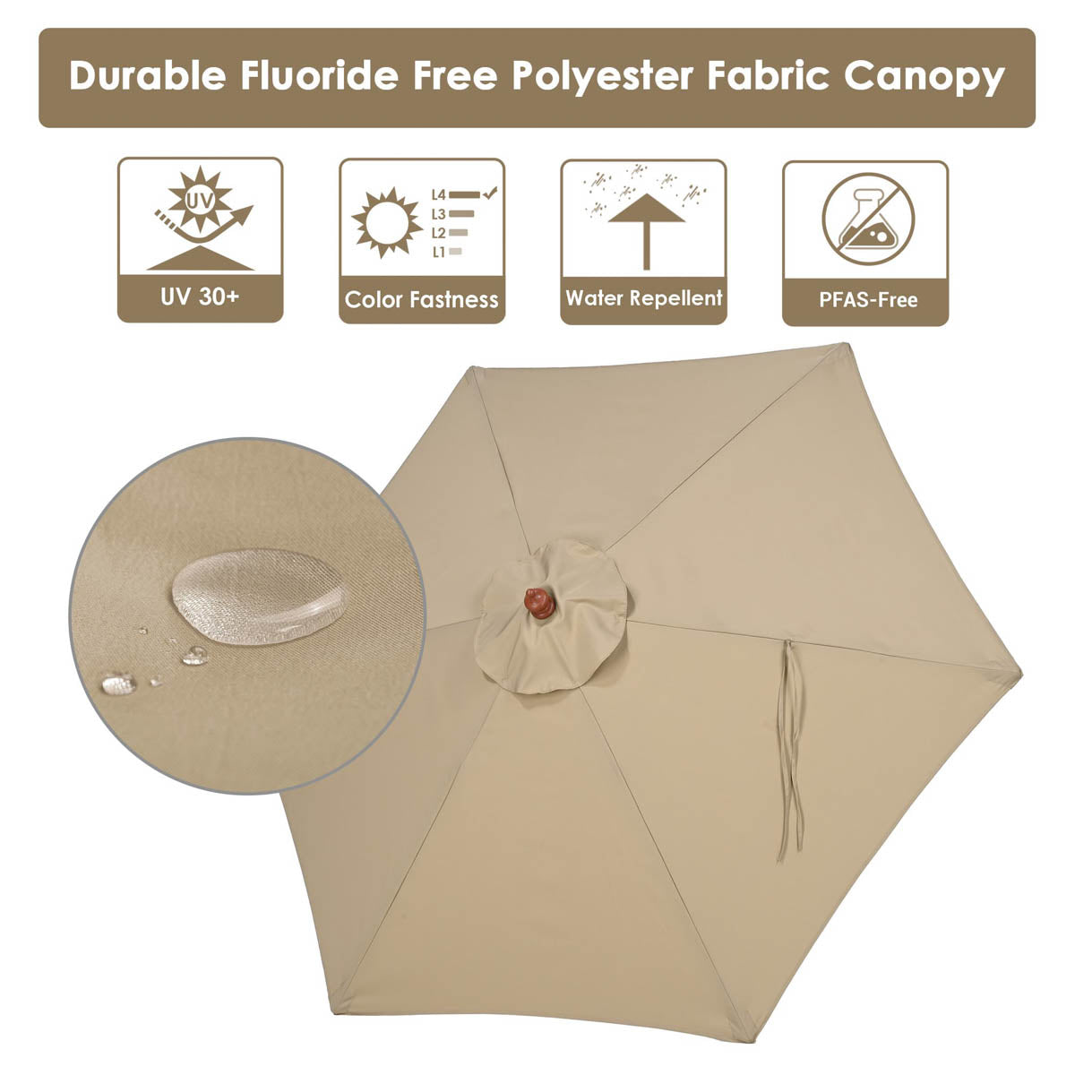 - Material: PFAS-free Polyester, Wood Pole