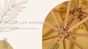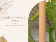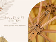 - 1 1/4” dia. beech wood pole and ribs create a natural, rustic atmosphere; pulley lift system allows for height adjustment