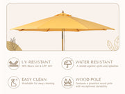 9ft Boho Wooden Patio Umbrella Acrylic Fabric UV50+ 10yr Buttercup