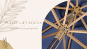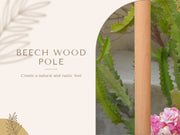- 1 1/4” dia. beech wood pole and ribs create a natural, rustic atmosphere; pulley lift system allows for height adjustment