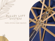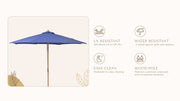 9ft Boho Wooden Patio Umbrella Acrylic Fabric UV50+ 10yr Grape Hyacinth
