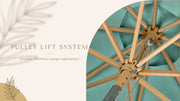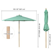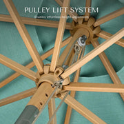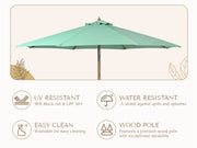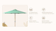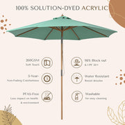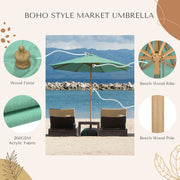9ft Boho Wooden Patio Umbrella Acrylic Fabric UV50+ 10yr Peppermint