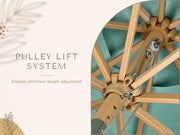 - 1 1/4” dia. beech wood pole and ribs create a natural, rustic atmosphere; pulley lift system allows for height adjustment