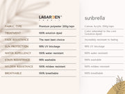 - Material: 250GSM Sunumbrella Fabric, Wood Pole & Ribs