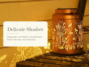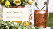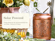 Add some magic to your outdoor space with our Set of 2 Solar Lanterns. These lanterns charge in the sun, casting a lovely mushroom, hummingbird, leaves and blossoms shadow at dusk. Enjoy up to 10 hours of warm ambient light after a full charge by hang them in your garden, patio, backyard or place them on your table for a charming ambiance. They also make a great gift for someone special.